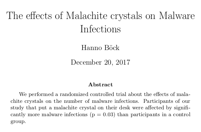 - Give the other group a fake malachite crystal that cannot be easily distinguished from a real one (control group).