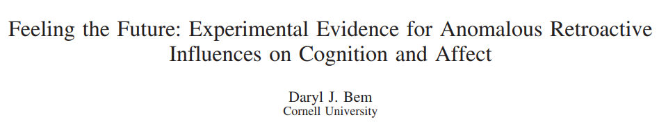 Bem played by the implicit rules that guide academic publishing. In fact, Bem presented many more studies than would usually be required. It would therefore be mistaken to interpret our assessment of the Bem experiments as an attack on research of unlikely phenomena; instead, our assessment suggests that something is deeply wrong with the way experimental psychologists design their studies and report their statistical results.