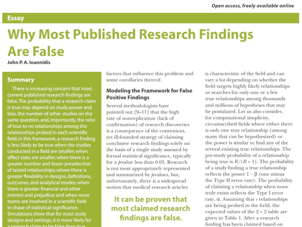 2012: Amgen publiziert Kommentar in Nature, dass in firmeninternen Studien nur 6 von 53 wichtigen Papers repliziert werden konnten.