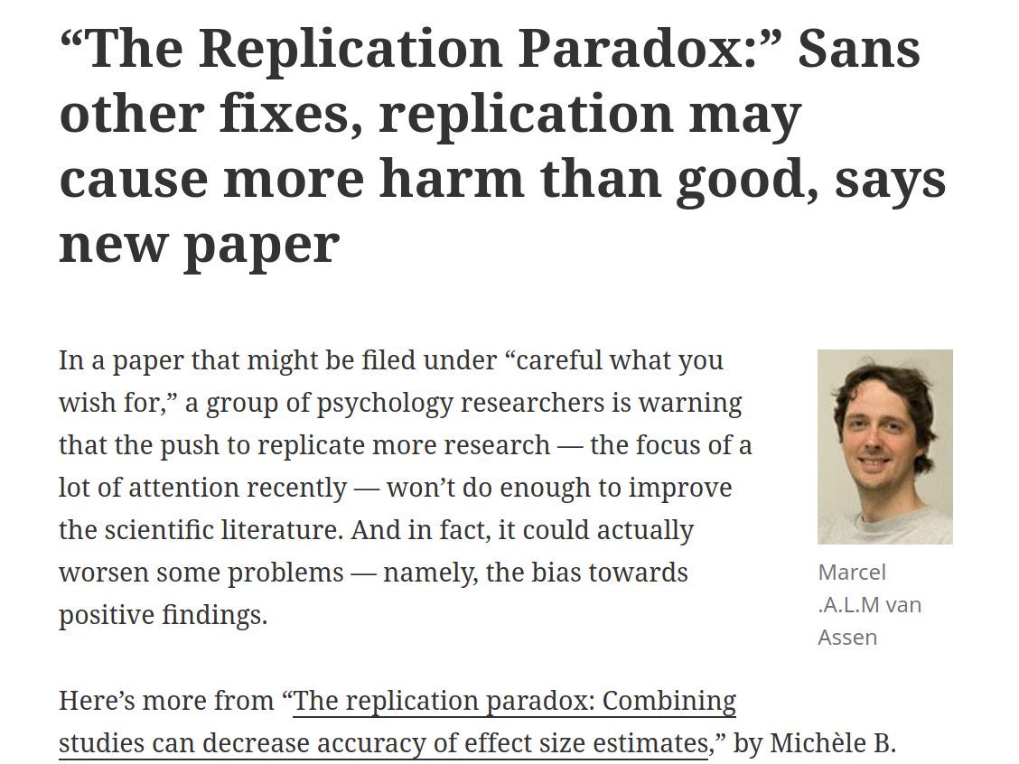 Replikationen wurden zunächst nicht veröffentlicht, später nur 3 Studien.