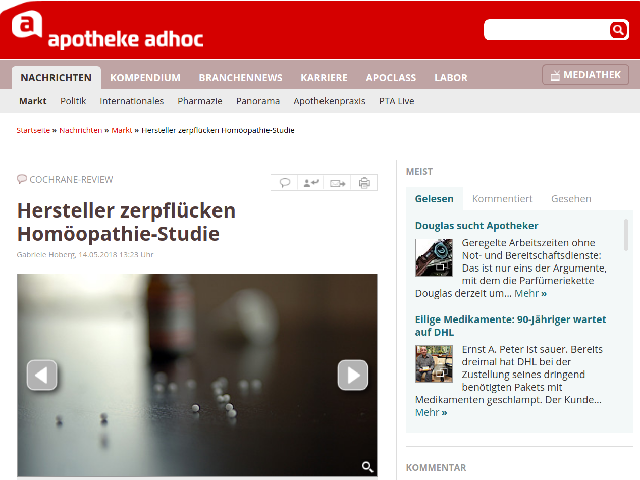 Die Essenz der Cochrane-Studie lautete: Für Globuli kann eine Wirkung jenseits des Placebo-Effektes nicht signifikant nachgewiesen werden. Konkret ging es in der Studie um die Frage, ob homöopathische Arzneimittel bei akuten Infektionen der oberen Atemwege im Kindesalter wirken. [...]