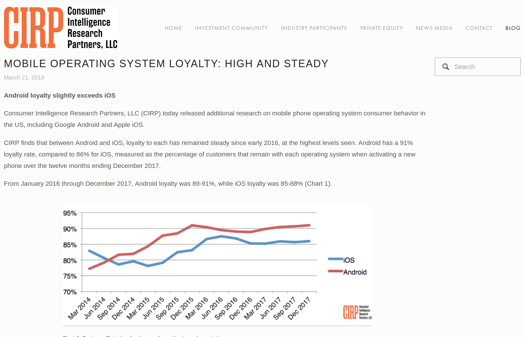 CIRP bases its findings on quarterly surveys, with a sample of 500 subjects in each, from March 2013-December 2017, that activated a new phone in each of the quarters surveyed. (Quelle)