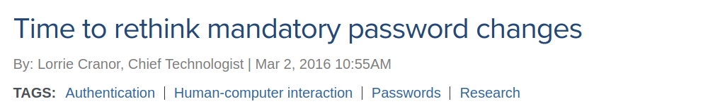 Im Januar 2016 verschickte die FTC einen Tweet, in dem sie das regelmäßige Wechseln von Passwörtern empfahl.