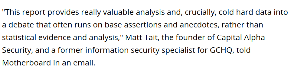 "We believe these data are relatively representative of what a sophisticated nation-state might have in its arsenal."